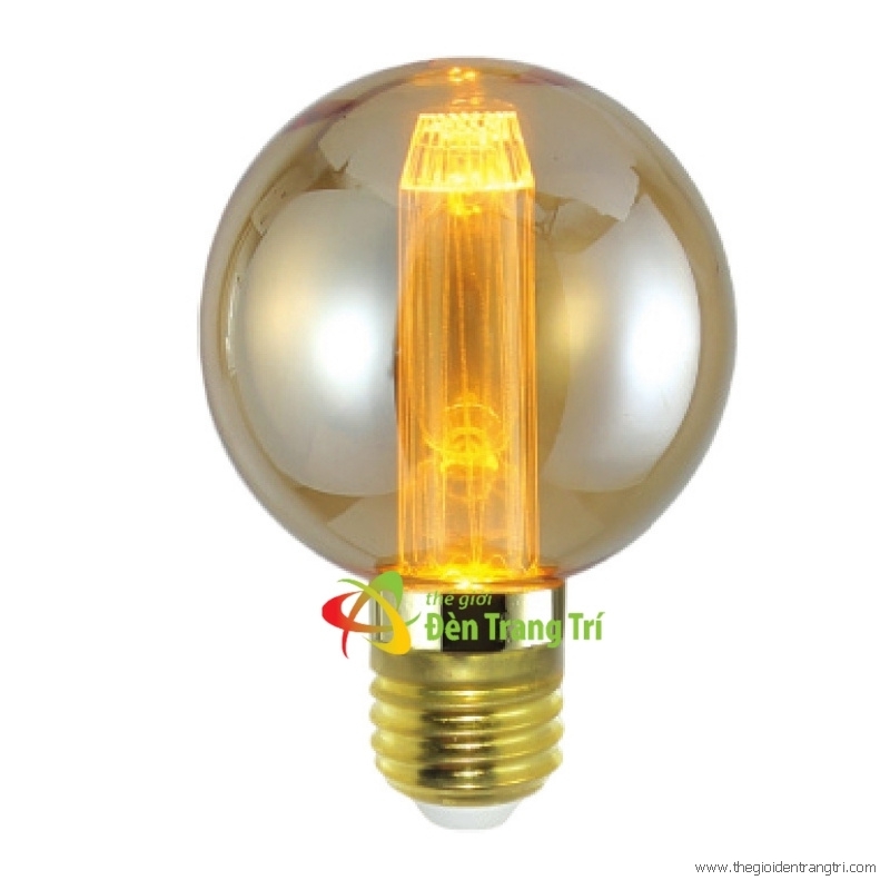 - Bóng thủy tinh màu trà, tán quang nhẹ, tim LED pháo hoa dạng lồng đứng nổi bật.