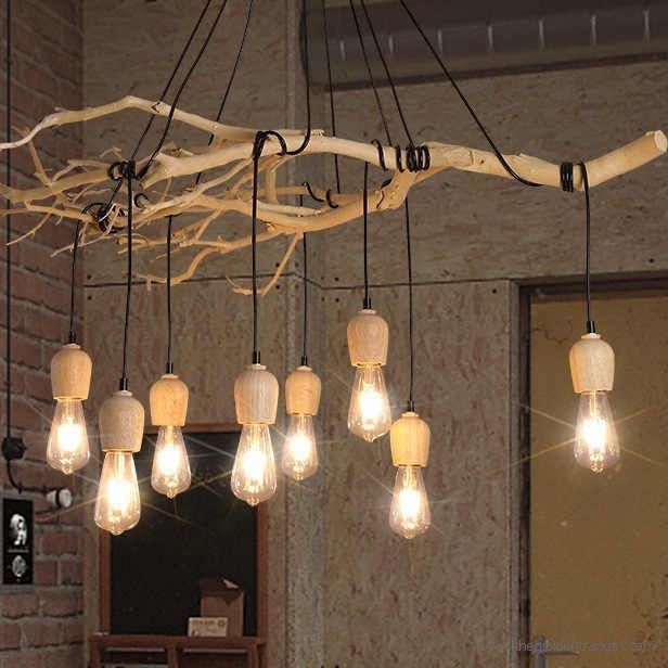 Thiết kế: Dây đui đèn bằng gỗ thả trần trang trí phong cách Mộc