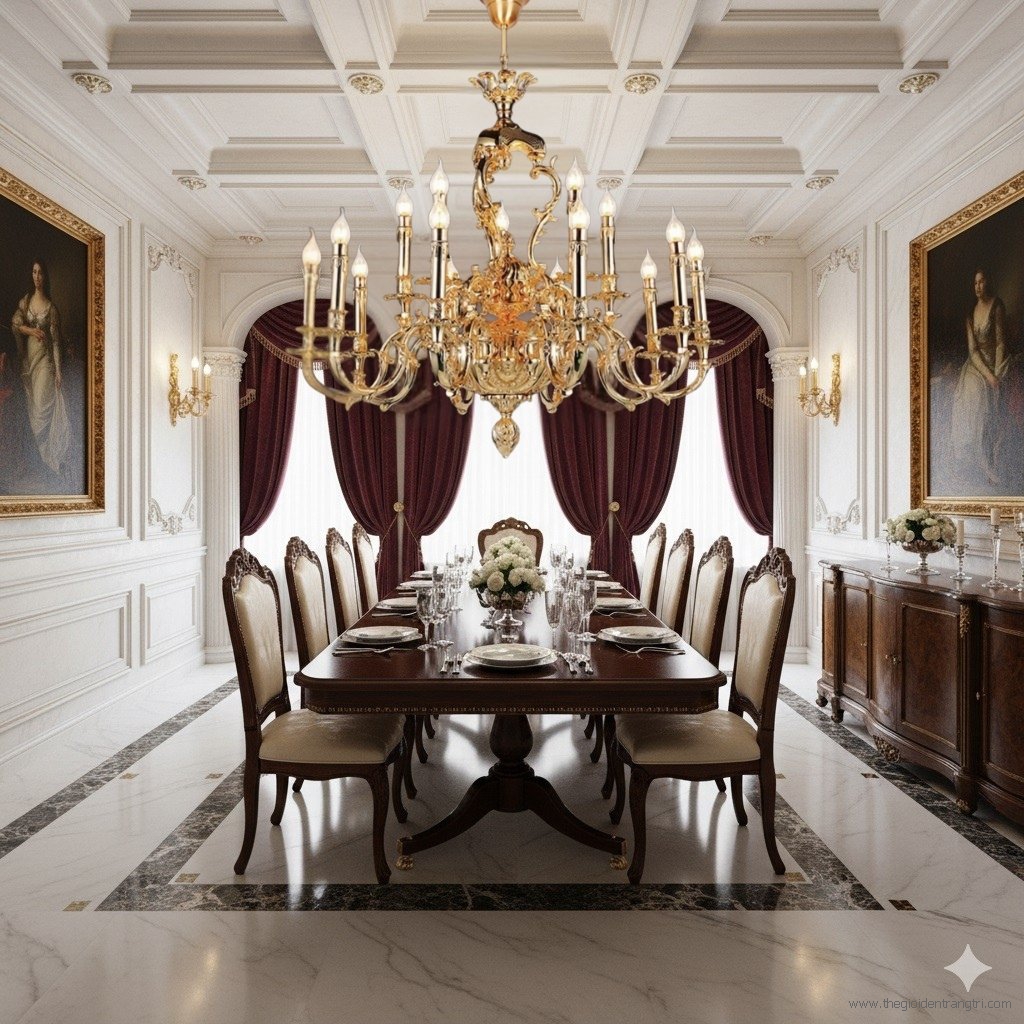 • đèn chùm đồng mạ vàng 24k, đèn chùm cổ điển pháp, đèn chùm thông tầng biệt thự