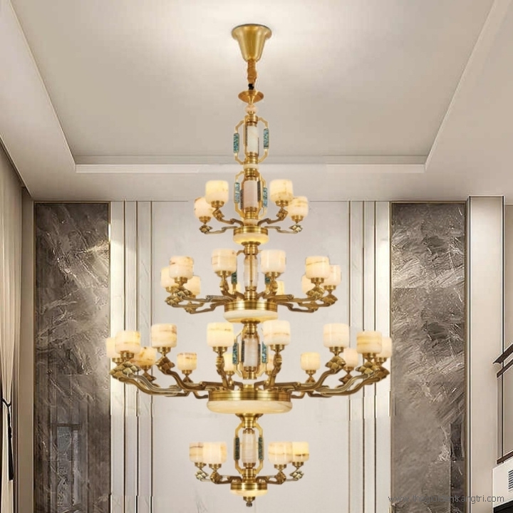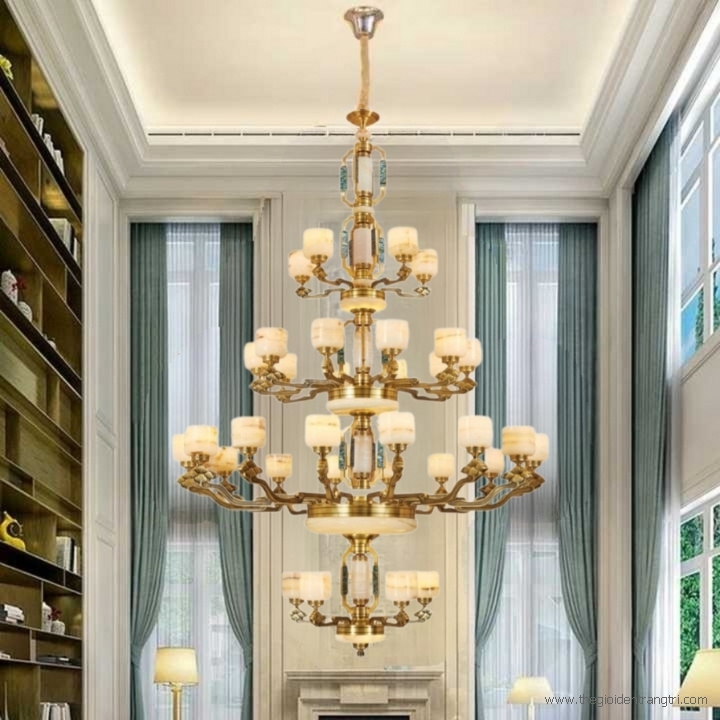 Đèn Chùm Đồng Nguyên Chất Chao Đá Bạch Ngọc CD1855-36 Φ1600