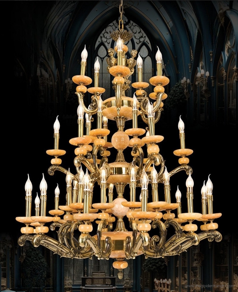 Đèn Chùm Nến Đồng Xi Vàng Chao Đá Bạch Ngọc CD333-42 Φ1070