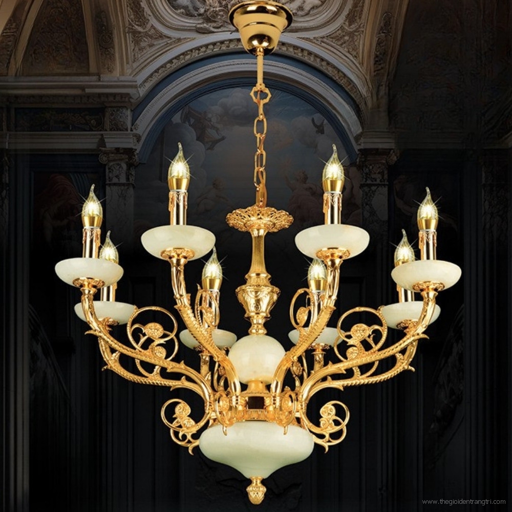 Đèn Chùm Nến Đồng Xi Vàng Chao Đá Bạch Ngọc CD333-42 Φ1070