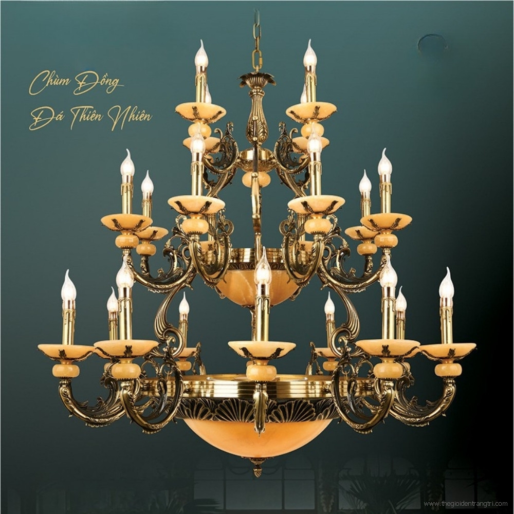 • đèn chùm nến đồng, đèn chùm đồng xi vàng, đèn chùm chao đá bạch ngọc, đèn chùm đồng cổ điển, đèn chùm biệt thự, đèn chùm 3 tầng, mẫu đèn chùm sang trọng