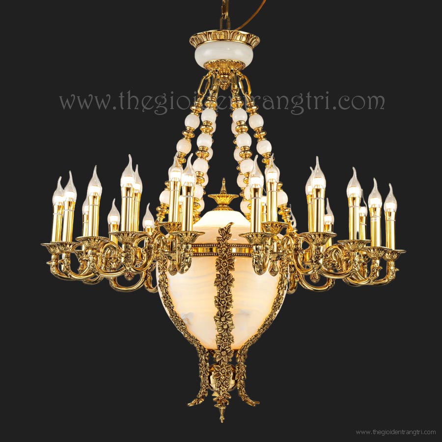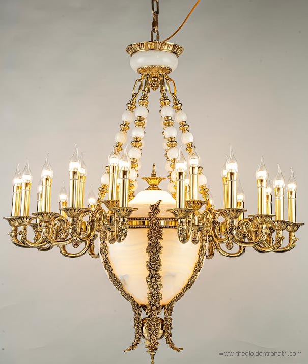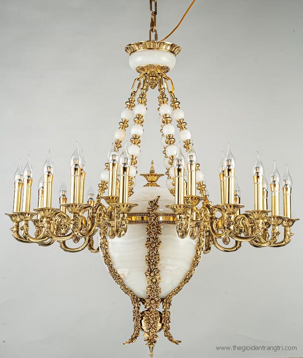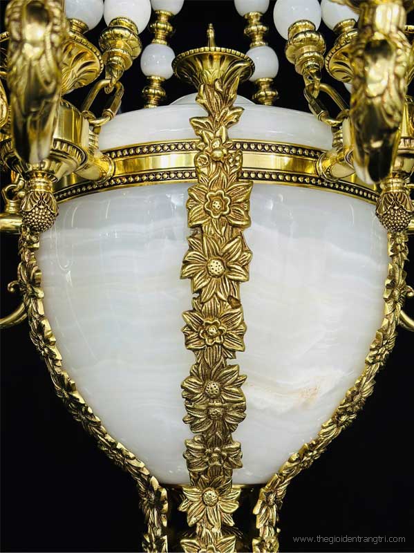 Đèn Chùm Nến Đồng Xi Vàng Chao Đá Bạch Ngọc CD333-42 Φ1070