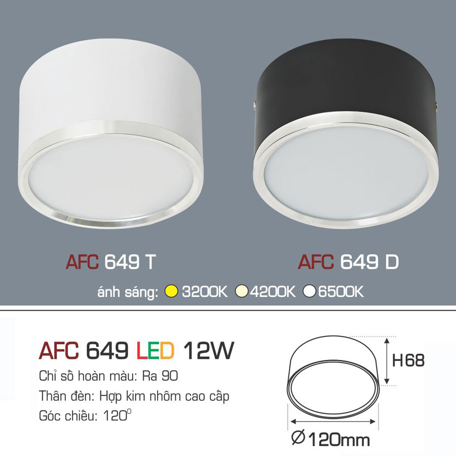 Đèn Downlight LED 1 Màu Gắn Nổi 12W AFC 649 Ø120