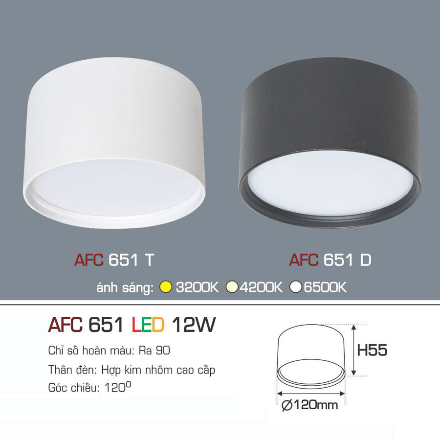 Đèn Downlight LED 1 Màu Gắn Nổi 12W AFC 651 Ø120