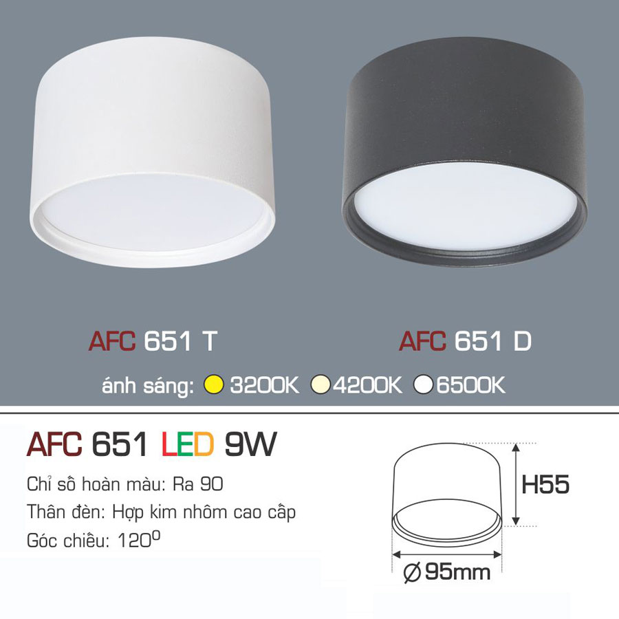 Đèn Downlight LED 1 Màu Gắn Nổi 9W AFC 651 Ø95