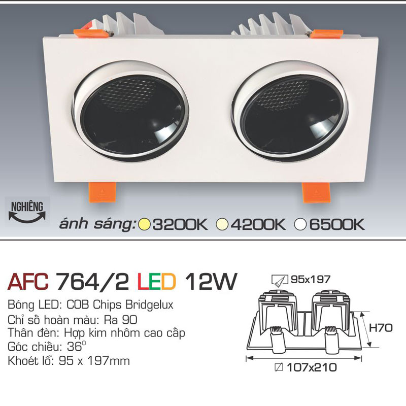 Đèn Downlight Led Đôi Âm Trần 3 Màu 12Wx2 AFC 764-2