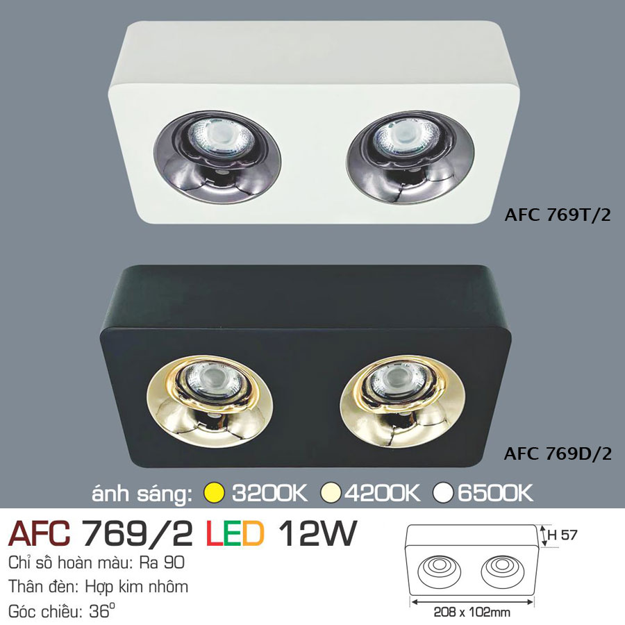 Đèn Downlight LED 1 Màu Gắn Nổi 12Wx2 AFC 769-2 |