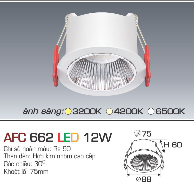 Đèn Led Âm Trần 1 Màu 12W Góc Chiếu 30 Độ AFC 662 Ø75