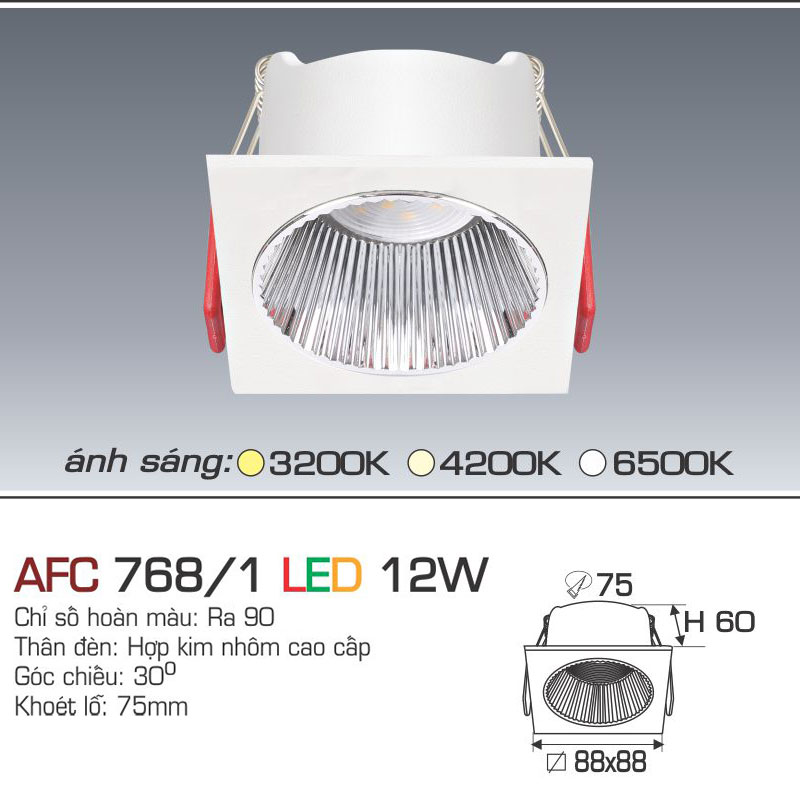 Đèn Led Âm Trần 1 Màu 12W Góc Chiếu 30 Độ AFC 768-1