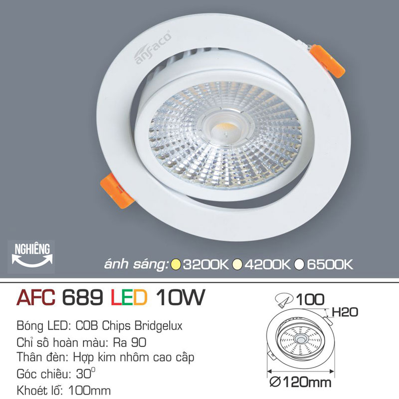 Đèn Led Âm Trần Chỉnh Hướng 10W AFC 689 Ø100