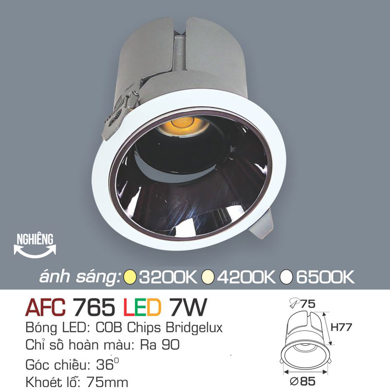 Đèn LED Âm Trần Góc Chiếu 36 độ 1 Màu 7W AFC 765 Ø75
