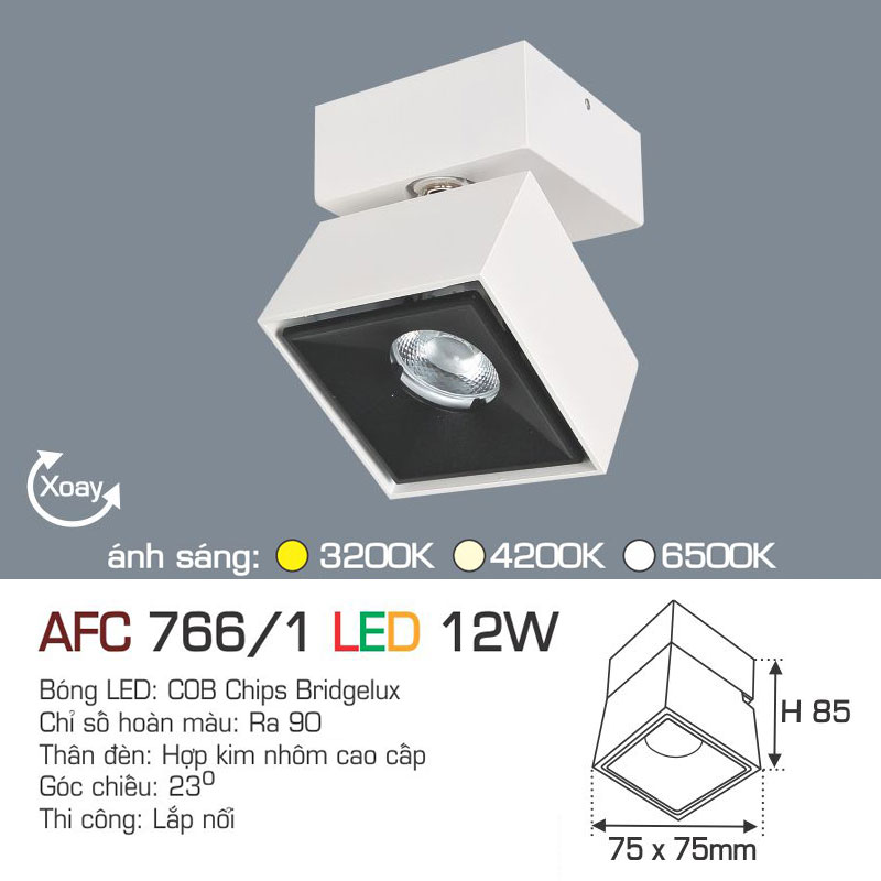 Đèn Downlight LED 1 Màu Gắn Nổi Chỉnh Hướng 12W AFC 766-1
