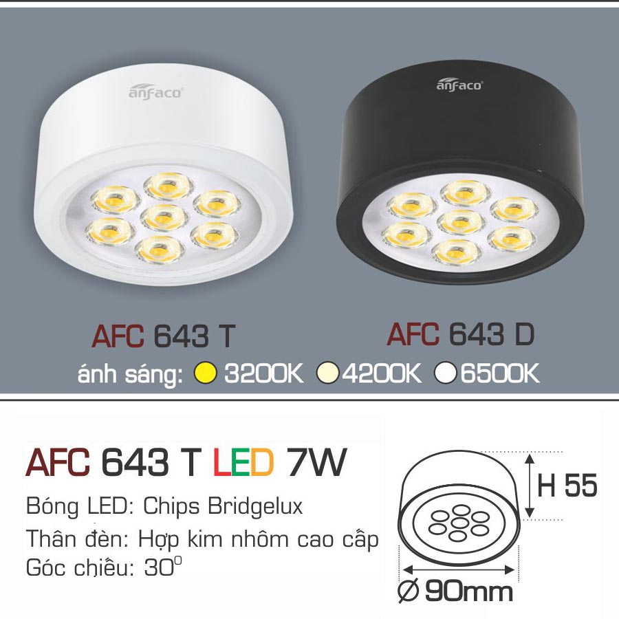 Đèn Lon LED Gắn Nổi 1 Màu 7W AFC 643 Ø90