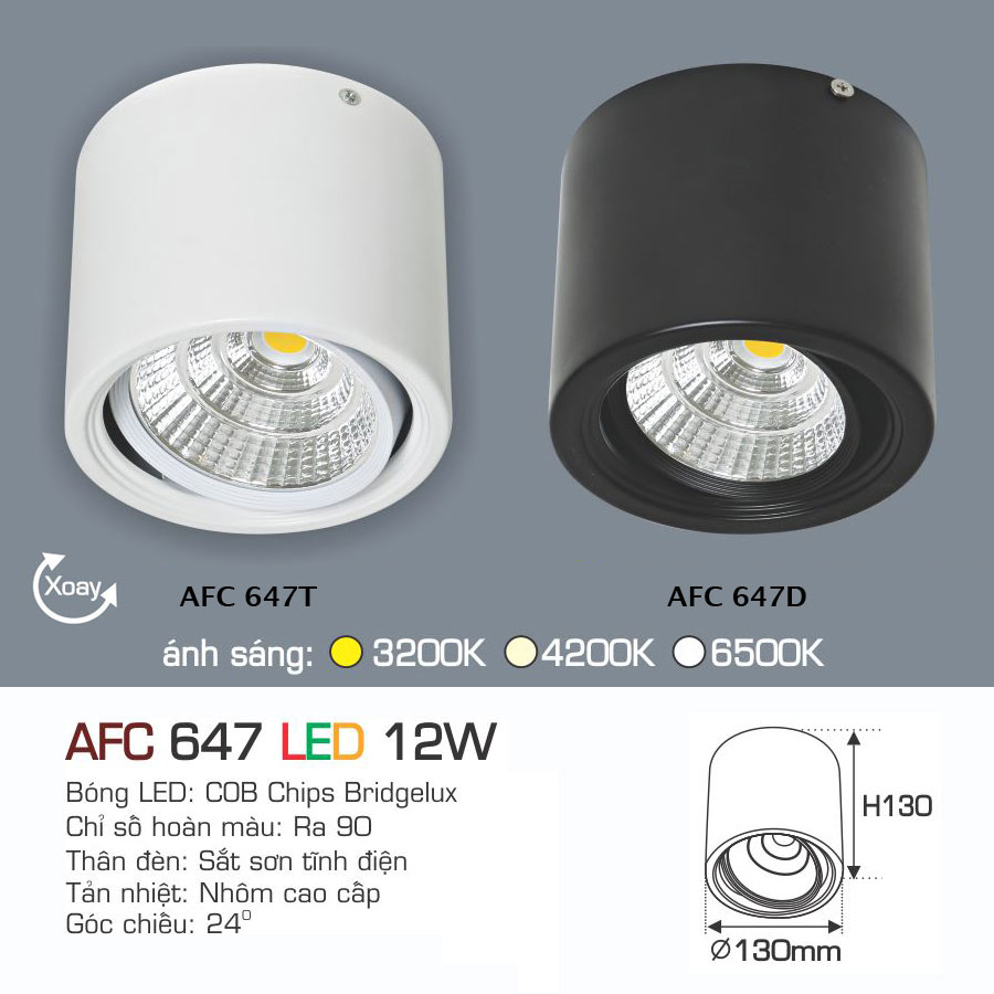 Đèn Lon LED Gắn Nổi Chỉnh Hướng 12W AFC 647 Ø130
