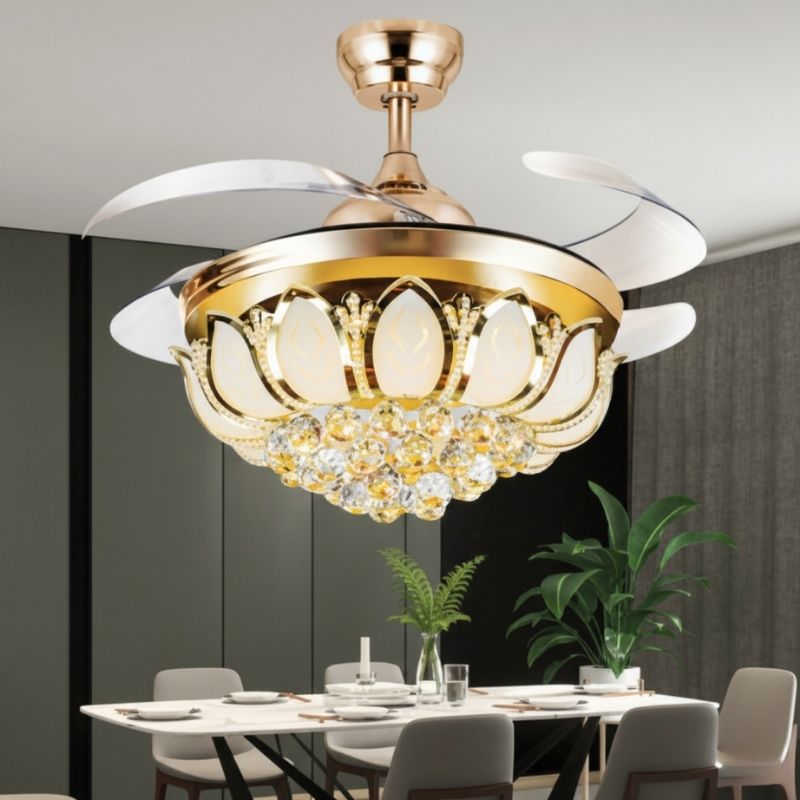 ![]() Quạt Trần Cánh Xếp Có Đèn Pha Lê Trang Trí Phòng Khách Chung Cư QT5021 |