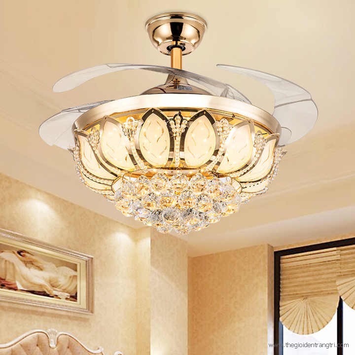 Đèn Quạt Trần Pha Lê Cánh Xếp QT1789 Ø1100