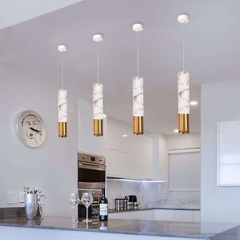 Đèn thả LED ống đơn trang trí vân đá trắng