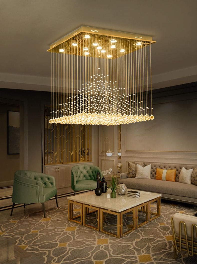 Đèn thả pha lê không chỉ là nguồn sáng mà còn là một tác phẩm nghệ thuật trong phòng ăn. Chúng tạo ra không gian thú vị và thu hút mọi ánh nhìn. Bạn có thể tận dụng chúng để tạo điểm nhấn hoặc để tạo nên một không gian ấm cúng và lãng mạn.