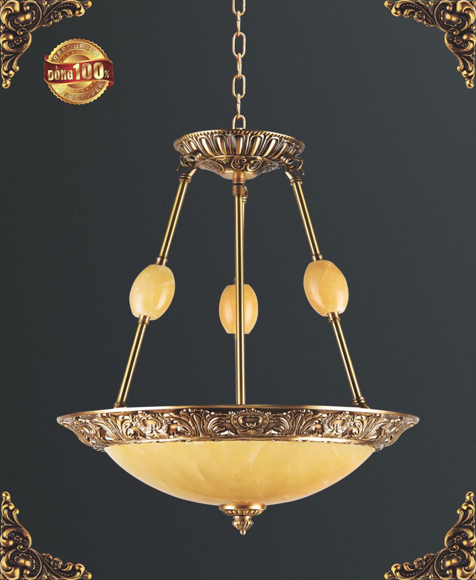 - Đèn chùm đồng chao đá phong cách tân cổ điển