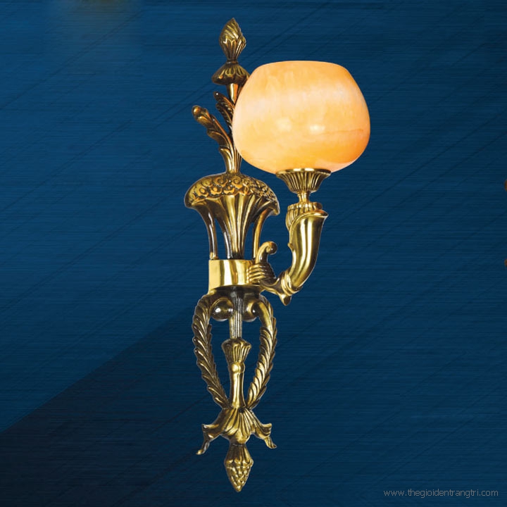 • Đèn tường đồng tay nến chao đá VD9355-1, đèn tường nến đồng, đèn trang trí tường cầu thang