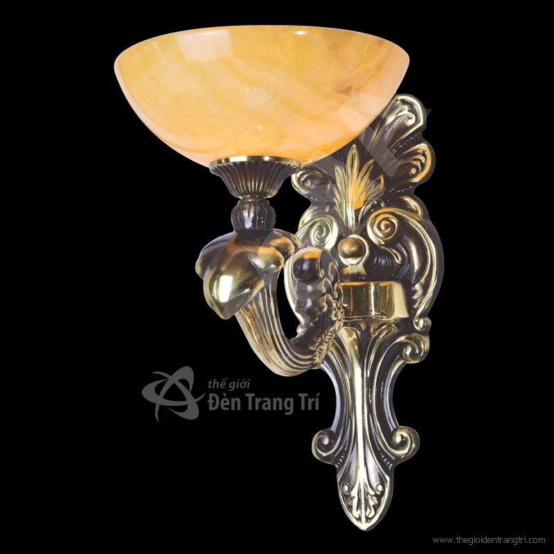 • Đèn tường đồng tay nến chao đá VD9355-1, đèn tường nến đồng, đèn trang trí tường cầu thang