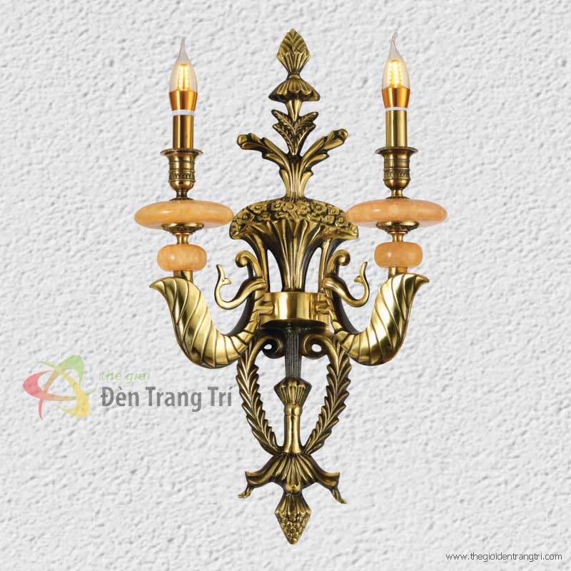 • Đèn tường đồng tay nến chao đá VD9355-1, đèn tường nến đồng, đèn trang trí tường cầu thang