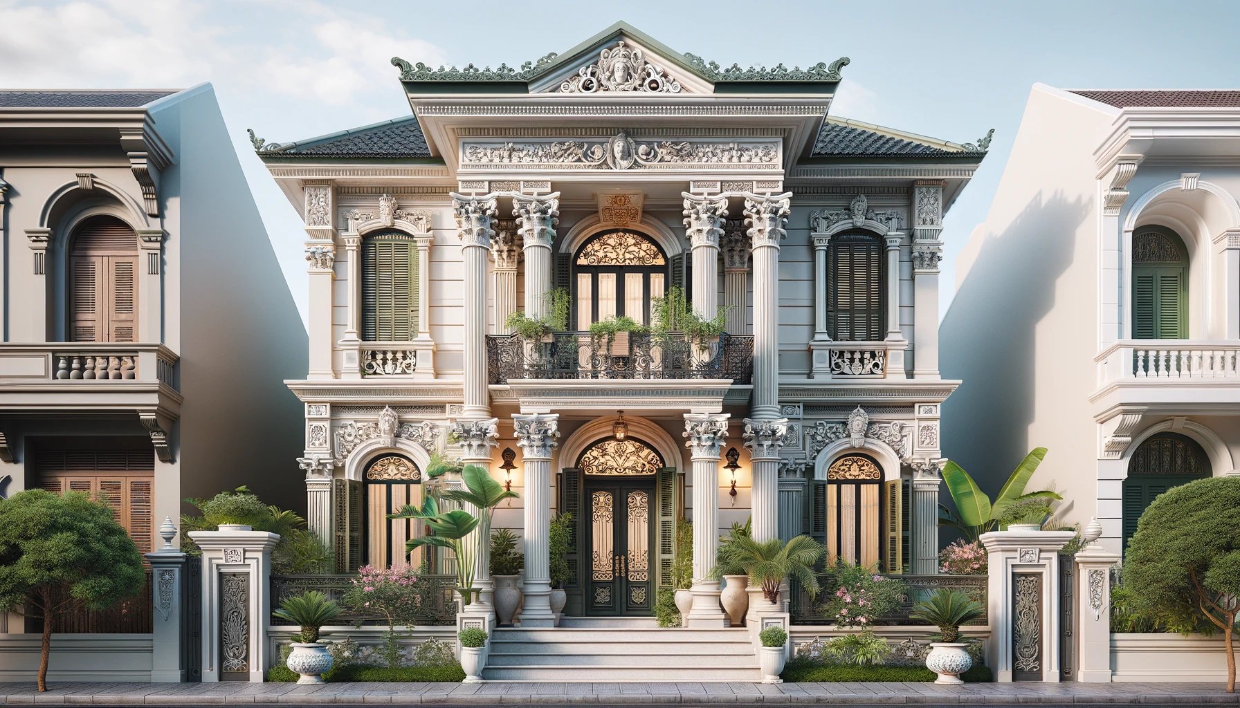Mặt Tiền Kiến Trúc Indochine Với Cột Corinthian