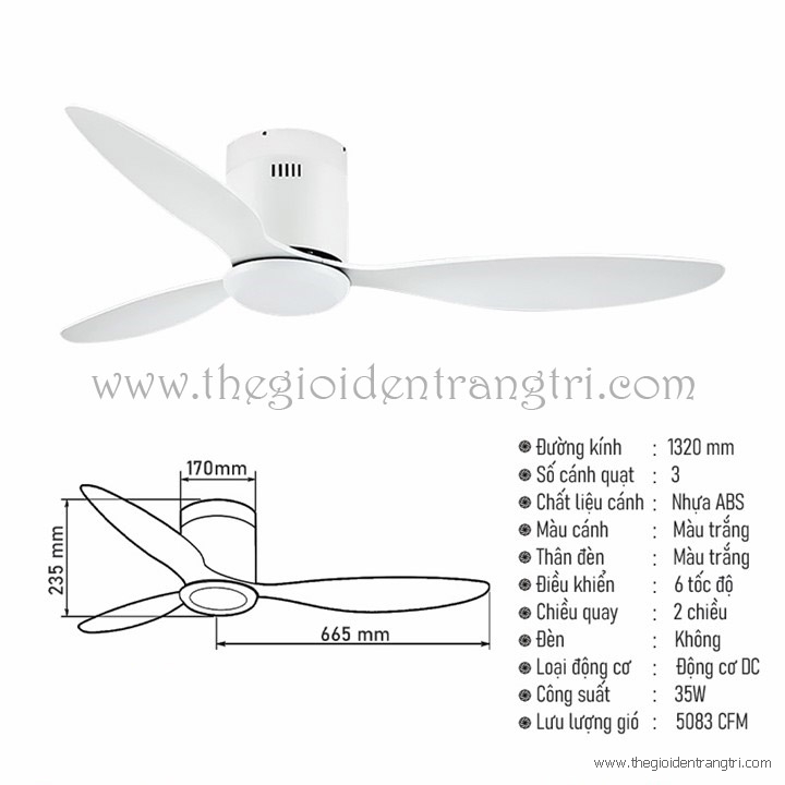 Quạt Trần 3 Cánh Có Đèn Cho Trần Thấp UDQ6150 Φ1300