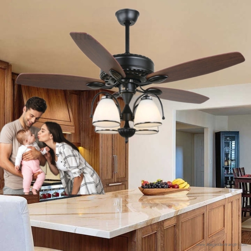 Quạt Trần 5 Cánh Nhựa Có Đèn Trang Trí Phòng Khách UDQ6166