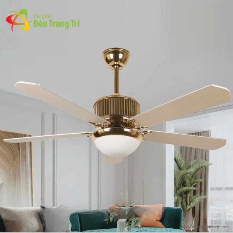 Quạt Trần 5 Cánh Nhựa Có Đèn Đồng Trang Trí UDQ6173 Φ1420