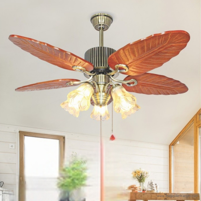 Quạt Trần 5 Cánh Gỗ Có Đèn Trang Trí Phòng Khách 79B47