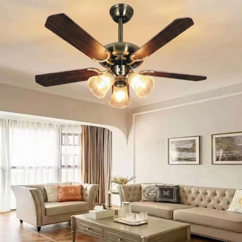 Quạt Trần 5 Cánh Gỗ Có Đèn Trang Trí Phòng Khách AU-QT1006 Ø1200