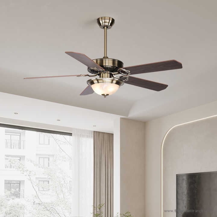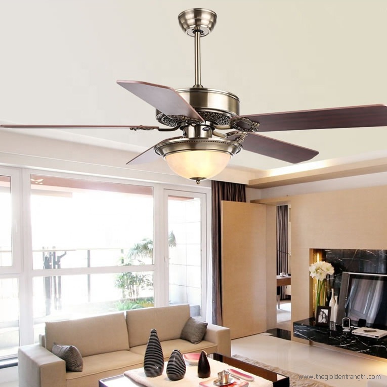 Đèn Quạt Trần 5 Cánh Sắt Có Đèn Trang Trí Phòng Khách 79B51