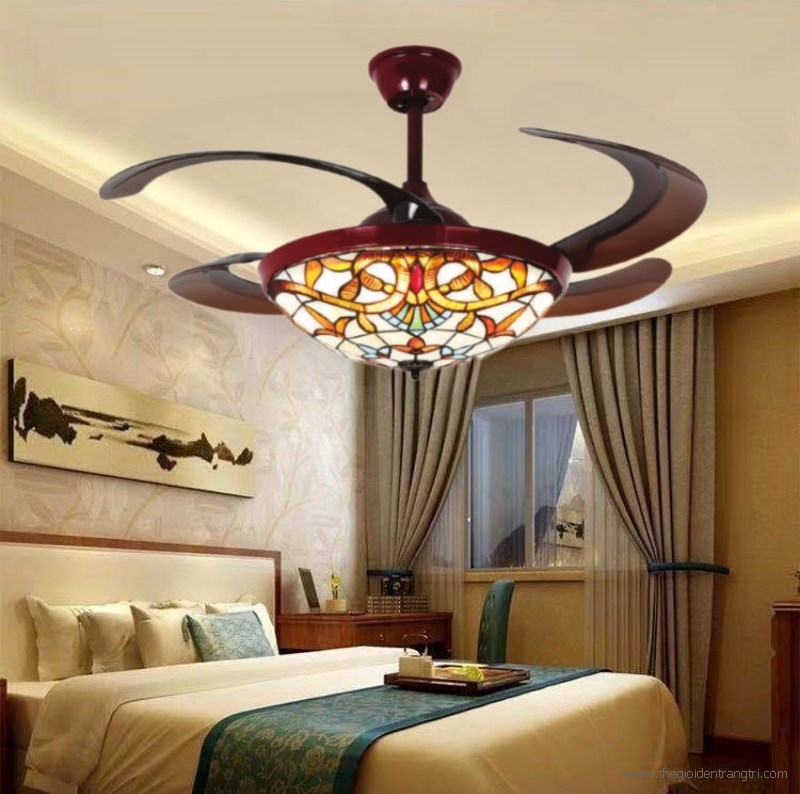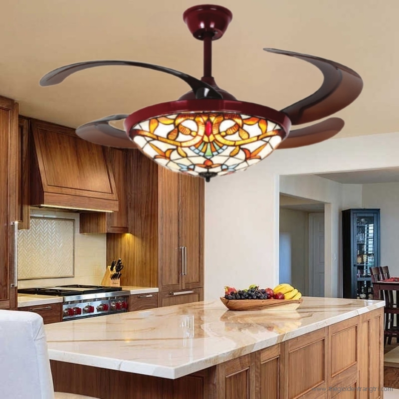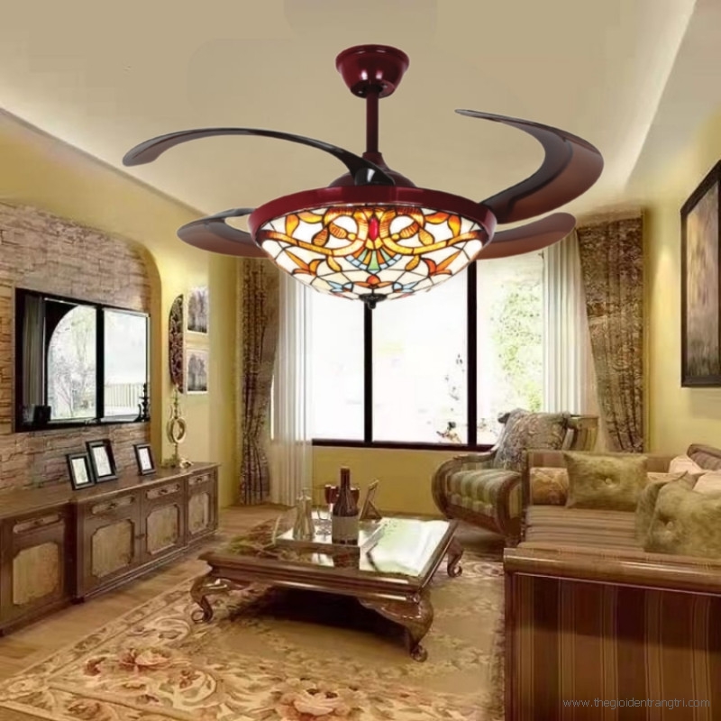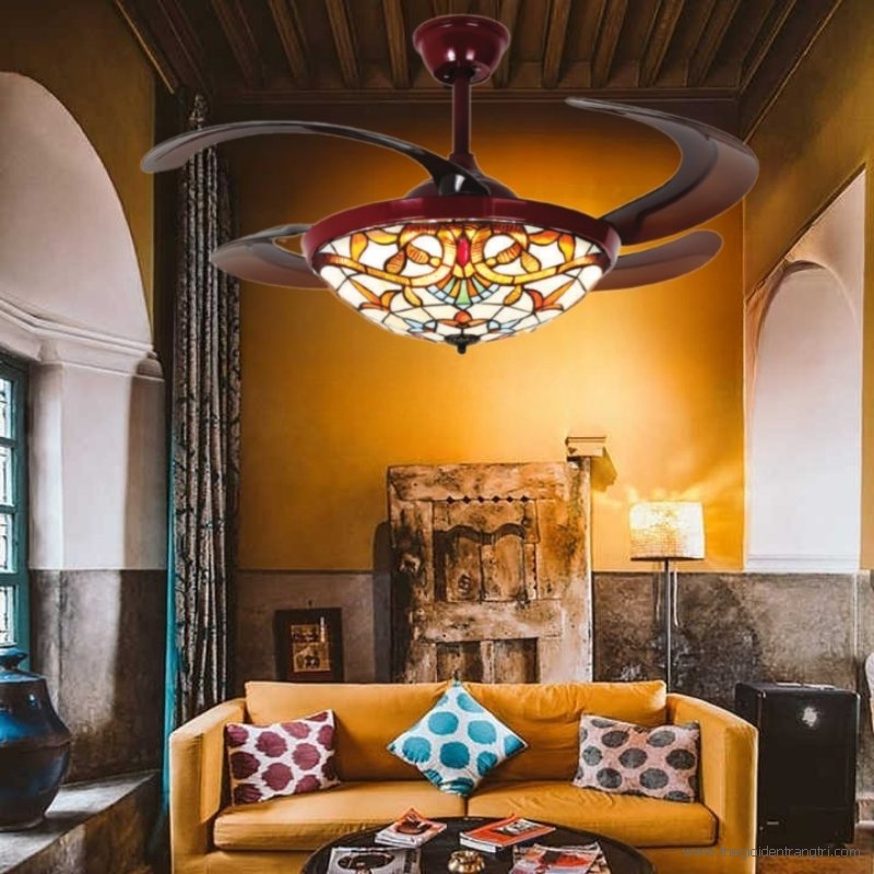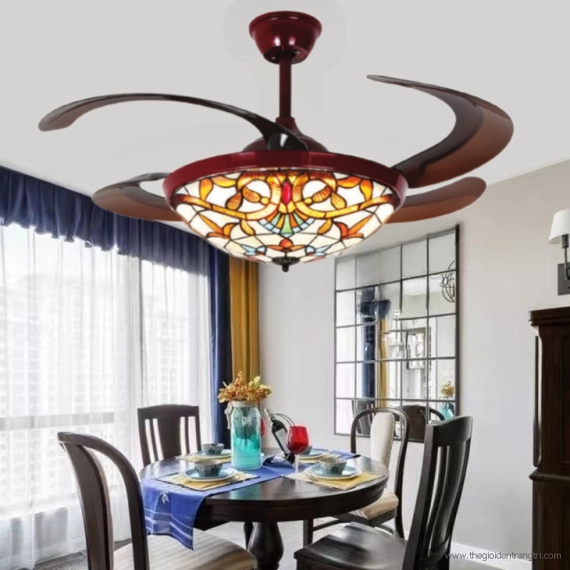 Quạt Trần Cánh Xếp Có Đèn Kiểu Tiffany UDQ6156 Φ1080