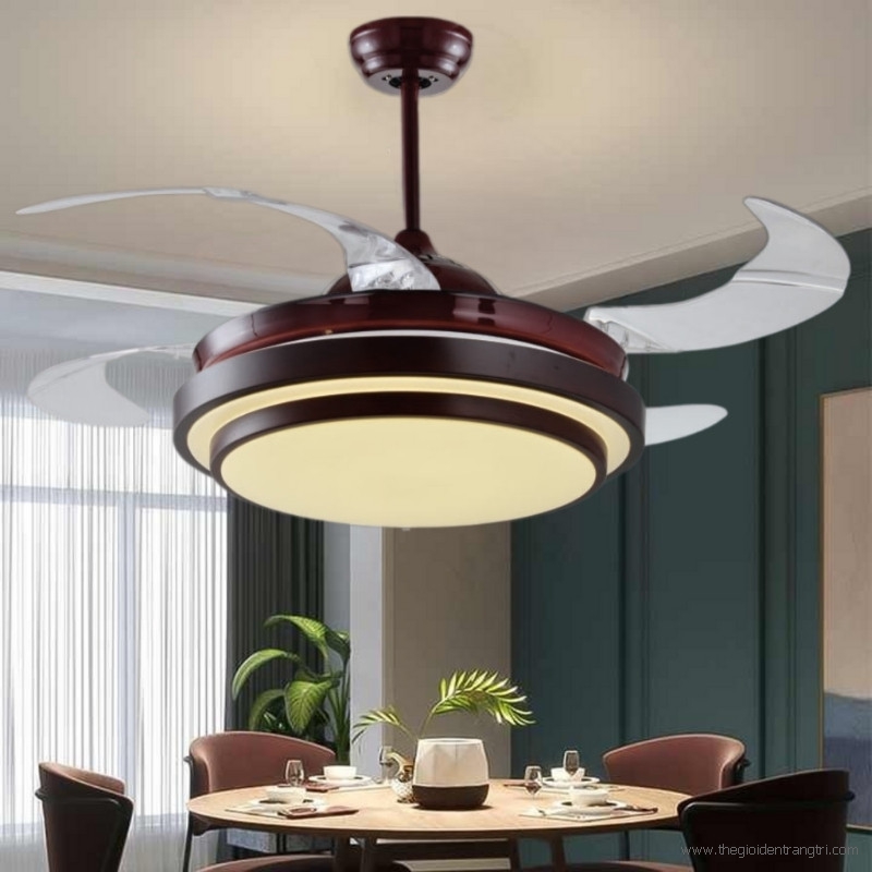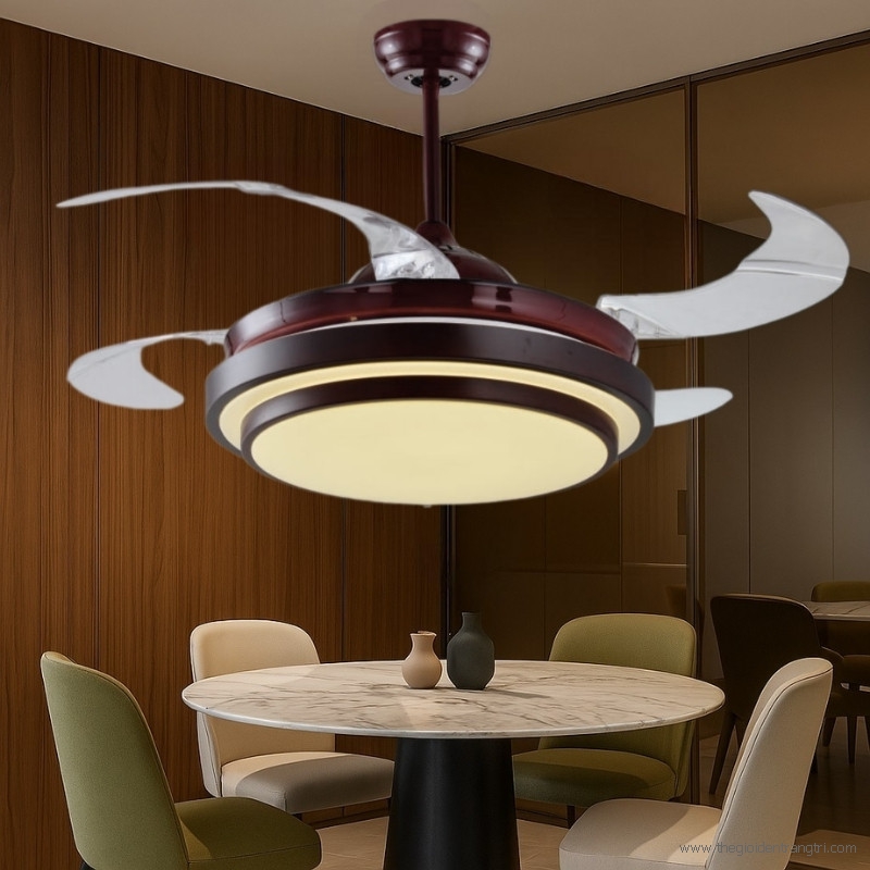 Quạt Trần Cánh Xếp Có Đèn Trang Trí Phòng Khách QT6170 Φ1200