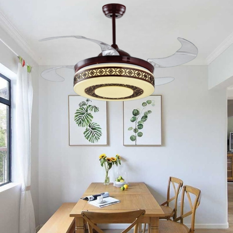 Quạt Trần Cánh Xếp Có Đèn Trang Trí Tân Cổ Điển DQ8008